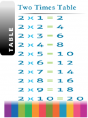 Free Times Tables Worksheets - ThoughtCo Print the PDF: 2 Times Tables. This printable is the first in this series that uses the same factor —in this case, the number 2—in each problem. For example, this worksheet contains such problems as 2 x 9, 2 x 2, and 2 x 3. Break out the multiplication table again and start to go over each column and row of the chart.